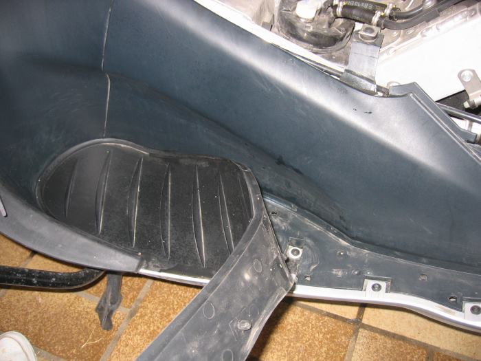 Zuletzt kamen noch die beiden seitlichen Tunnelverkleidung an die Reihe. Hierzu muss erstmal das Gummi-Trittbrett abgezogen werden (ist nur gesteckt).