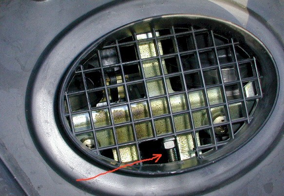 Im obigen Bild hat Areg aus dem US Forum versucht die Einstellschraube der Drosselklappe (d.h. der Verbindung der beiden Drosselklappen) zu kennzeichnen. Um zu versuchen diese einzustellen hat er das Plastikgitter aufgeschnitten - leider kommt man an die Schraube wohl auch dann nur sehr schlecht ran.
