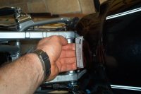 Passen Sie dabei auf, dass die Vorderseite des Tanks nicht mit dem Rahmen